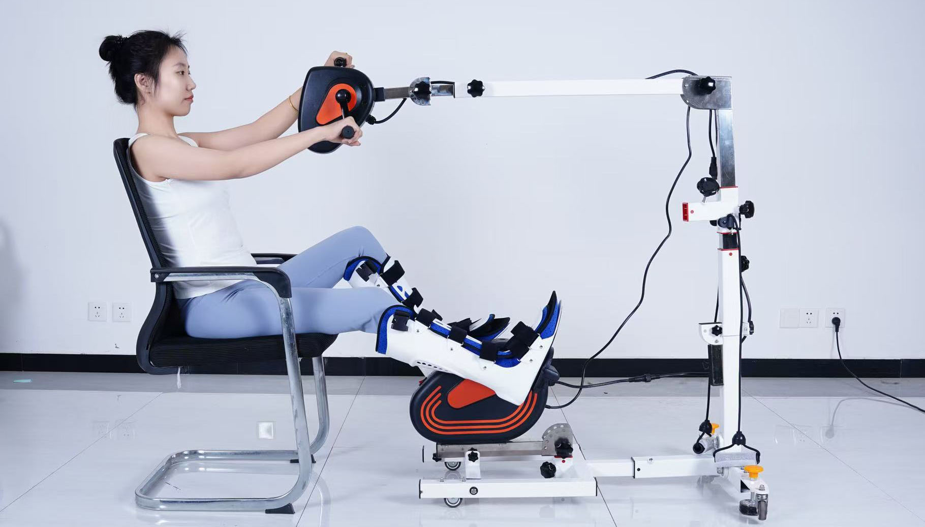 7、用於躺姿(zī)或坐姿(zī)訓練,可以單機運行(上肢/下肢單獨訓練)或雙機運行(上下肢同時訓練),可正反轉方向康複訓練(liàn)